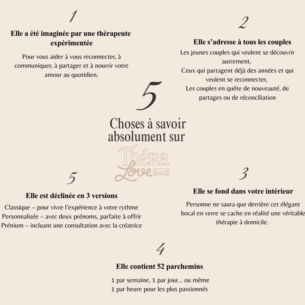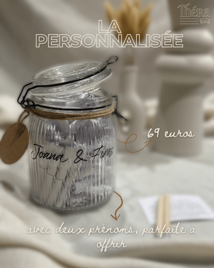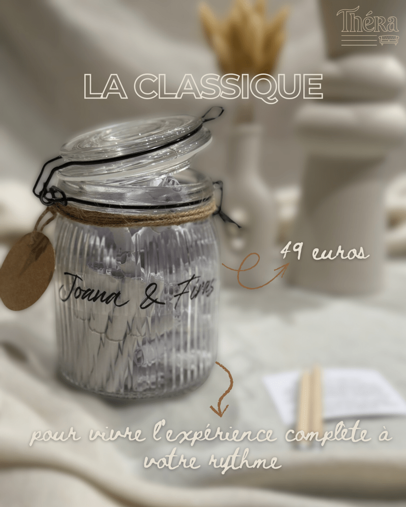 Un joli pot en verre qui se fond dans toutes les décorations, discret et subtil, 52 parchemins à découvrir, 6 thèmes, des exercices à faire ensemble, des heures de discussions, de partage et d’échange.